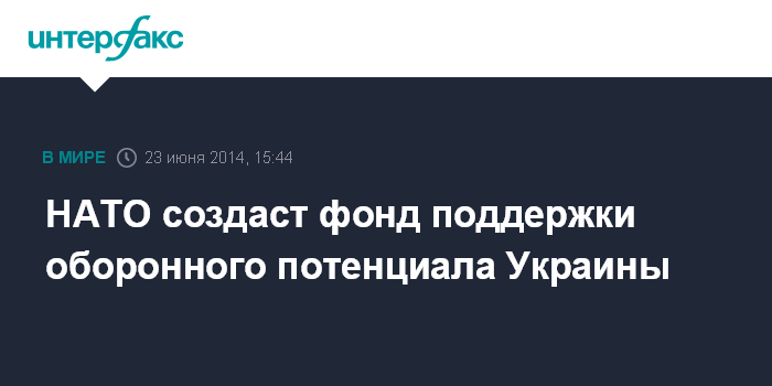 Москва. 23 июня. INTERFAX.RU - НАТО создаст трастовый фонд поддержки оборонного потенциала Украины. Об этом в понедельник на брифинге сообщил высокопоставленный чиновник альянса.