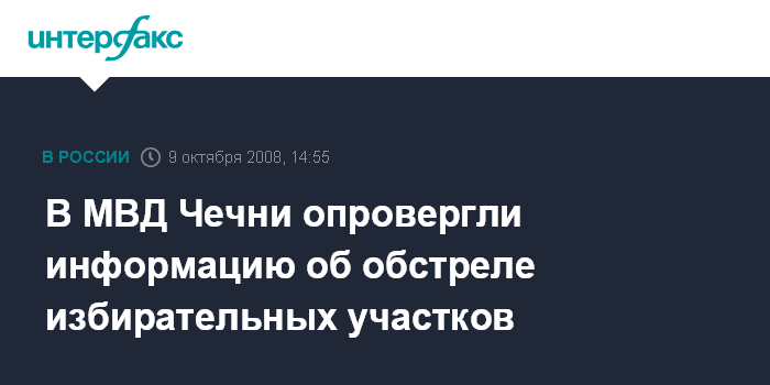 Москва. 9 октября. INTERFAX.RU - Информация об обстреле в Веденском районе Чеченской Республики избирательных участков, появившаяся в отдельных СМИ, не соответствует действительности, заявляют в МВД Чечни.