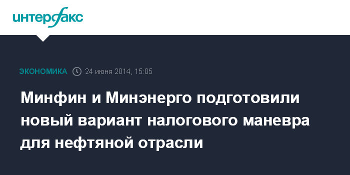 Москва. 24 июня. INTERFAX.RU - Минфин и Минэнерго подготовили новый вариант налогового маневра в нефтяной отрасли, срок проведения сократился с четырех лет, предлагавшихся ранее Минэнерго, до трех, сообщил "Интерфаксу" замминистра финансов РФ Сергей Шаталов.