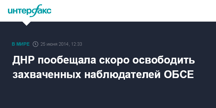 Москва. 25 июня. INTERFAX.RU - Ополченцы в Северодонецке (Луганская область) могут в ближайшее время отпустить группу из четырех наблюдателей ОБСЕ, заявил "Интерфаксу" первый вице-премьер самопровозглашенной Донецкой народной республики Андрей Пургин.