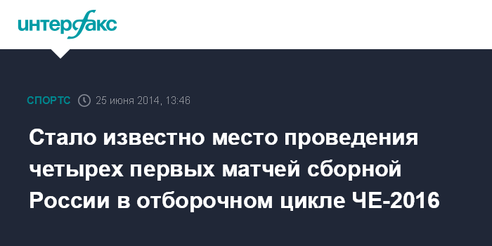 Москва. 25 июня. INTERFAX.RU - Сборная России по футболу начнет отборочный цикл чемпионата Европы-2016 8 сентября домашним матчем с Лихтенштейном, который пройдет на подмосковной "Арене Химки".