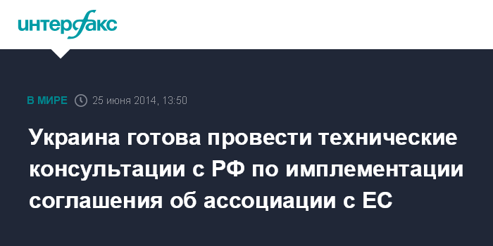 Москва. 25 июня. INTERFAX.RU - Украина готова развеять опасения России по поводу подписания экономической части Соглашения об ассоциации и создании зоны свободной торговли с Евросоюзом в ходе технических консультаций, заявил премьер-министр Арсений Яценюк.
