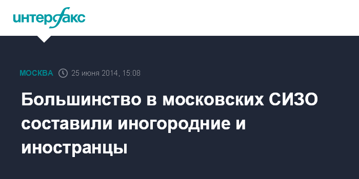 Москва. 25 июня. INTERFAX.RU - Москвичи составляют только 19% от содержащихся в московских СИЗО, большая часть арестантов - иностранные граждане (30%) и жители других регионов (33%), заявил заместитель прокурора Москвы Борис Марков.