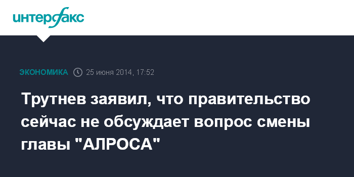 Москва. 25 июня. INTERFAX.RU - В правительстве РФ в настоящий момент не обсуждается вопрос смены главы "АЛРОСА", сообщил вице-премьер Юрий Трутнев.