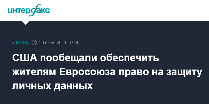 Москва. 26 июня. INTERFAX.RU - Администрация президента США Барака Обамы согласилась в соответствии с требованиями ЕС принять закон, предоставляющий европейским гражданам большинство из тех прав на защиту личных данных, которыми пользуются американские граждане, сообщает The Guardian.
