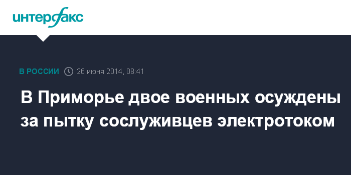 Москва. 26 июня. INTERFAX.RU - Уссурийский гарнизонный военный суд вынес обвинительный приговор двум военнослужащим, которые избивали и пытали электротоком своих сослуживцев.