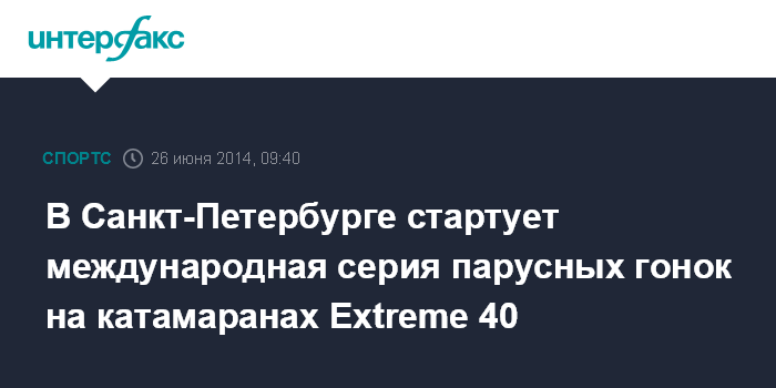 Москва. 26 июня. INTERFAX.RU - Впервые в России 26 июня у Петропавловской крепости в Санкт-Петербурге откроется международная регата катамаранов класса Extreme 40 - Extreme Sailing Series.
