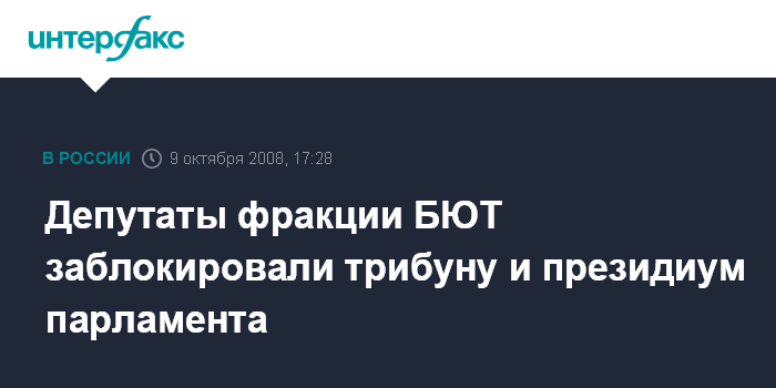Москва. 9 октября. INTERFAX.RU – Депутаты фракции БЮТ заблокировали трибуну и президиум парламента, после чего в Верховной Раде объявлен перерыв на 30 минут.