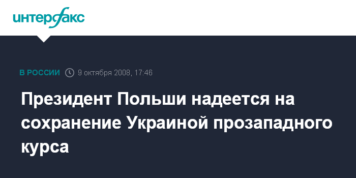 Москва. 9 октября. INTERFAX.RU – Надежду на то, что Украина продолжит претворение в жизнь прозападной политики выразил в четверг президент Польши Лех Качиньский.