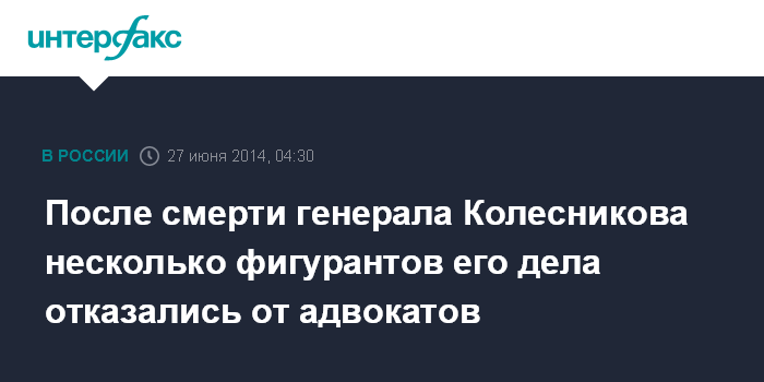 После смерти генерала Колесникова несколько фигурантов его дела отказались от адвокатов