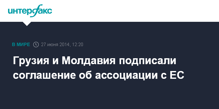 Москва. 27 июня. INTERFAX.RU - Грузия и Молдавия в пятницу подписали в Брюсселе соглашение об ассоциации с Евросоюзом, предусматривающее вхождение в зону углубленной и всеобъемлющей свободной торговли Европы.