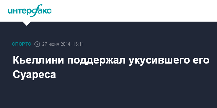 Москва. 27 июня. INTERFAX.RU - Защитник сборной Италии Джорджо Кьеллини заявил, что не обижается на уругвайского форварда Луиса Суареса, который укусил его во время матча группового этапа чемпионата мира. Кроме того он полагает, что дисквалификация на четыре месяца - это слишком серьезное наказание.