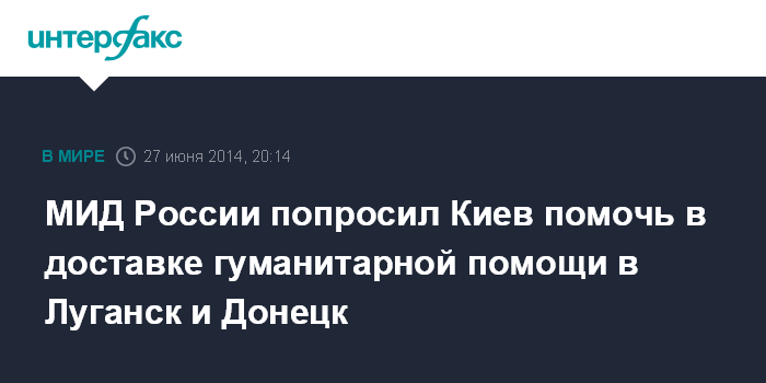Москва. 27 июня. INTERFAX.RU - МИД России в пятницу направил МИД Украины ноту относительно оказания гуманитарной помощи восточным регионам Украины.