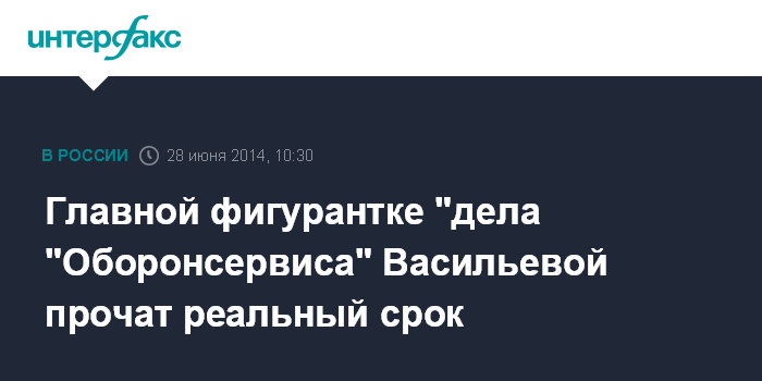 Москва. 28 июня. INTERFAX.RU - По "делу "Оборонсервиса", скорее всего, будет вынесен обвинительный вердикт, а главная фигурантка этого громкого дела - экс-чиновница Минобороны РФ Евгения Васильева получит реальный срок, сообщил "Интерфаксу" источник, знакомый с ситуацией.