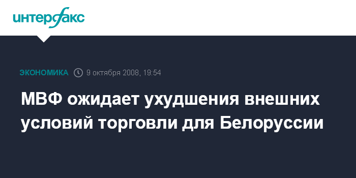 Москва. 9 октября. INTERFAX.RU - МВФ прогнозирует ухудшение внешних условий торговли для Белоруссии в 2009 году.