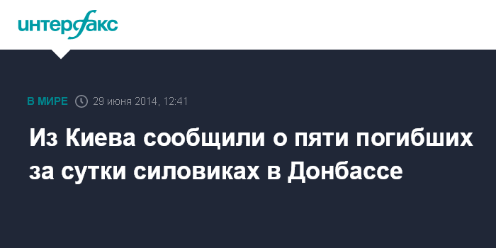 Москва. 29 июня. INTERFAX.RU - Пятеро военных украинской армии погибли и еще по меньшей мере семнадцать получили ранения за последние сутки на востоке страны, сообщил представитель штаба силовой операции Алексей Дмитрашковский "5 каналу" . Ополченцы до десяти раз обстреливали блокпосты украинской армии, утверждает он.