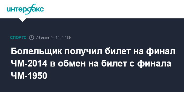 Болельщик получил билет на финал ЧМ-2014 в обмен на билет с финала ЧМ-1950
