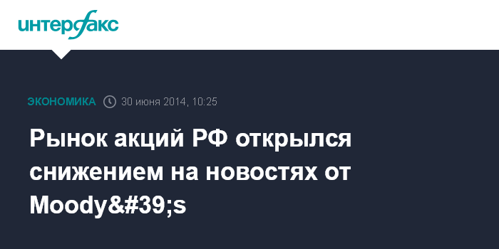 Москва. 30 июня. INTERFAX.RU - Рынок акций РФ открылся в понедельник смешанной динамикой цен blue chips на фоне разнополярных внешних факторов; негативом стали новости о присвоении агентством Moody's "негативного" прогноза рейтингу России, который был поставлен на пересмотр два месяца назад.