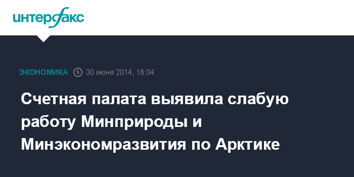 Москва. 30 июня. INTERFAX.RU - Коллегия Счетной палаты выявила слабую работу Минприроды и Минэкономразвития в рамках подпрограммы "Освоение и использование Арктики", сообщается на сайте Счетной палаты.