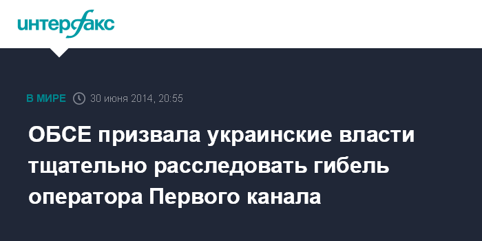 ОБСЕ призвала украинские власти тщательно расследовать гибель оператора Первого канала