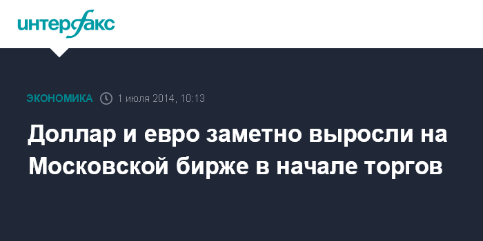 Москва. 1 июля. INTERFAX.RU - Доллар и евро заметно выросли на Московской бирже во вторник при открытии торгов, рубль снизился по отношению к бивалютной корзине на фоне роста опасений по поводу геополитических рисков.