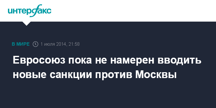 Евросоюз пока не намерен вводить новые санкции против Москвы