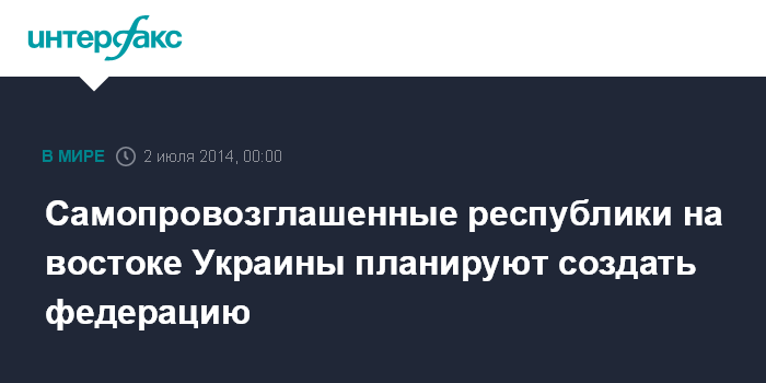 Москва. 1 июля. INTERFAX.RU - Самопровозглашенные Донецкая и Луганская народные республики (ДНР, ЛНР) планируют построить федерацию, заявил журналистам премьер-министр ДНР Александр Бородай.