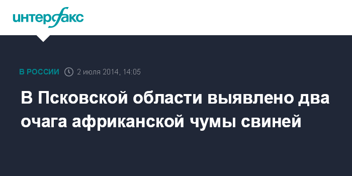 Москва. 2 июля. INTERFAX.RU - Специалисты в Невельском районе Псковской области выявили два очага африканской чумы свиней (АЧС), сообщил "Интерфаксу" заместитель губернатора Максим Жаворонков.