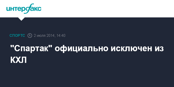 Москва. 2 июля. INTERFAX.RU - Хоккейный клуб "Спартак" официально исключен из участников Континентальной хоккейной лиги (КХЛ) на предстоящий сезон.