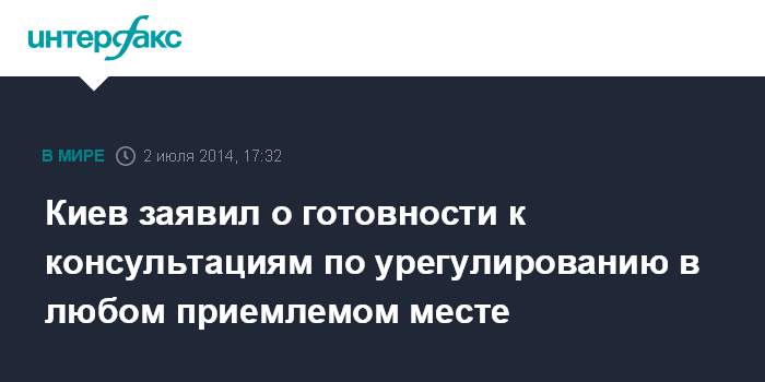 Киев заявил о готовности к консультациям по урегулированию в любом приемлемом месте