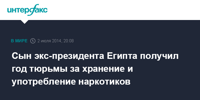 Сын экс-президента Египта получил год тюрьмы за хранение и употребление наркотиков