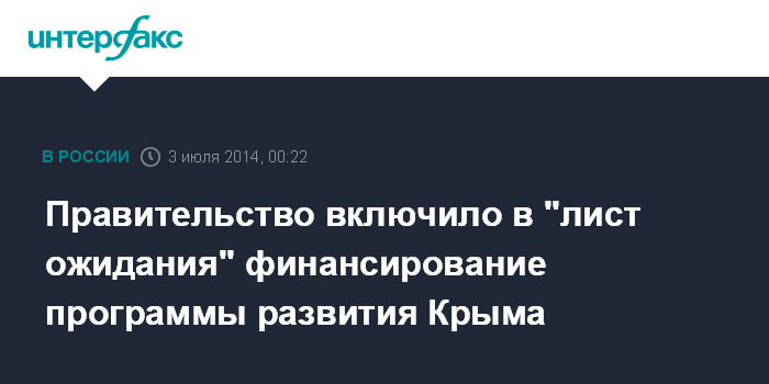 Правительство включило в "лист ожидания" финансирование программы развития Крыма