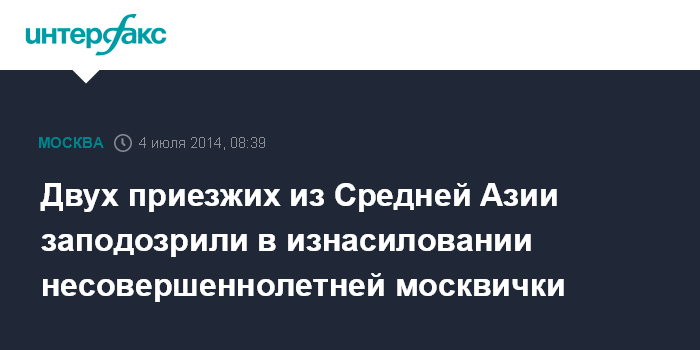 Москва. 4 июля. INTERFAX.RU - Гражданин Таджикистана и выходец с Узбекистана подозреваются в изнасиловании 17-летней девушки на юго-востоке Москвы, сообщил "Интерфаксу" источник в правоохранительных органах.