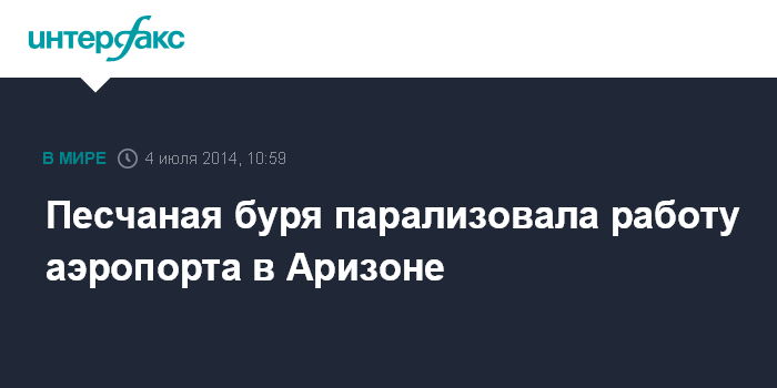 Москва. 4 июля. INTERFAX.RU - Песчаная буря обрушилась на американский штат Аризона, что привело к отмене авиарейсов в международном аэропорту города Финикса, сообщает агентство Associated Press.