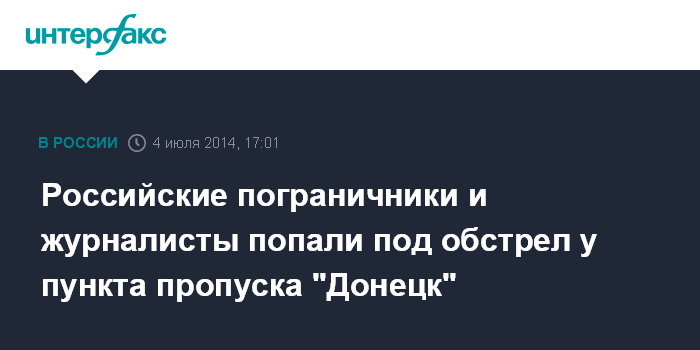 Москва. 4 июля. INTERFAX.RU - Российские пограничники на пункте пропуска "Донецк" попали под огонь с украинской стороны, сообщили агентству "Интерфакс" в силовых структурах регионах в пятницу. По его словам, в зоне обстрела также оказались представители СМИ и следователи.