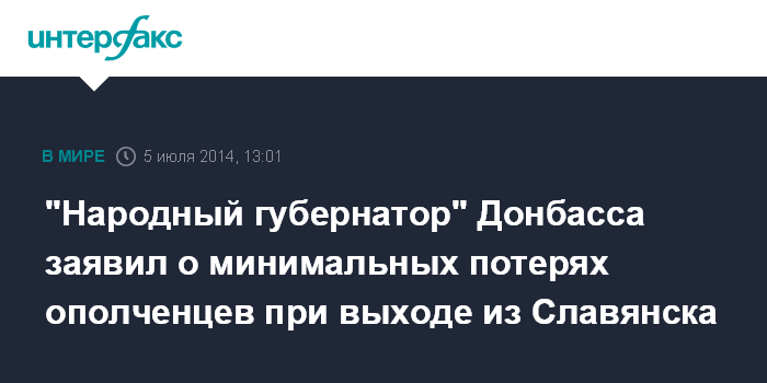 "Народный губернатор" Донбасса заявил о минимальных потерях ополченцев при выходе из Славянска
