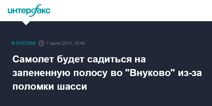 Самолет будет садиться на запененную полосу во "Внуково" из-за поломки шасси
