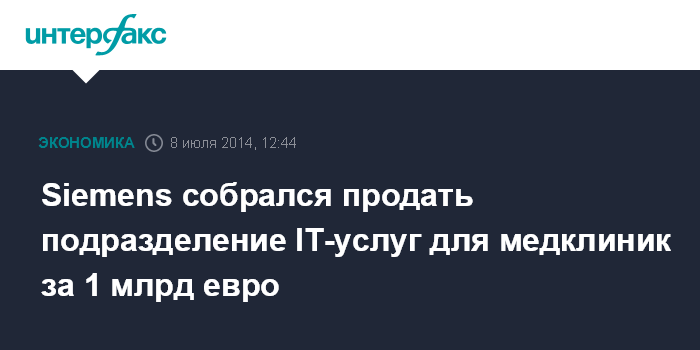 Москва. 8 июля. INTERFAX.RU - Германский концерн Siemens AG рассматривает возможность продажи подразделения, предоставляющего IT-услуги медицинским клиникам, сообщает агентство Bloomberg со ссылкой на осведомленные источники.
