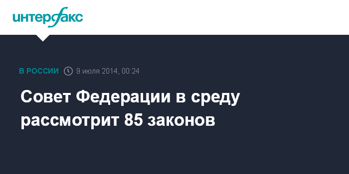 Москва. 9 июля. INTERFAX.RU - Совет Федерации на заключительном в весеннюю сессию заседании в среду рассмотрит более 85 законов, принятых Госдумой.