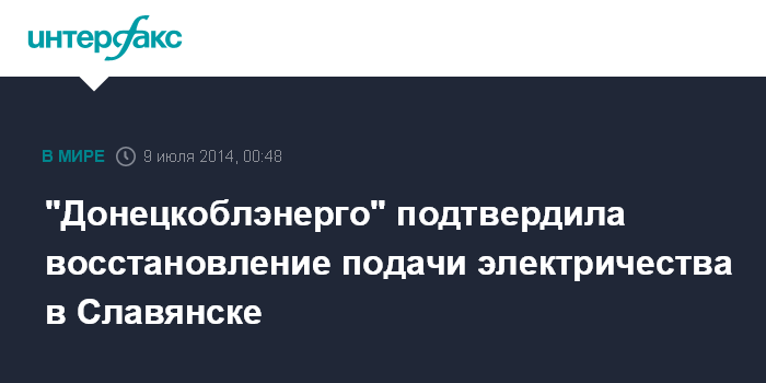 "Донецкоблэнерго" подтвердила восстановление подачи электричества в Славянске