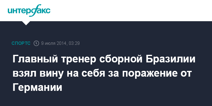 Москва. 9 июля. INTERFAX.RU - Главный тренер сборной Бразилии по футболу Луиз Фелипе Сколари извинился перед болельщиками за разгромное поражение от Германии в полуфинале ЧМ-2014