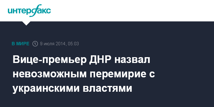 Вице-премьер ДНР назвал невозможным перемирие с украинскими властями