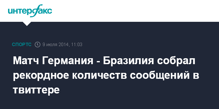 Матч Германия - Бразилия собрал рекордное количеств сообщений в твиттере