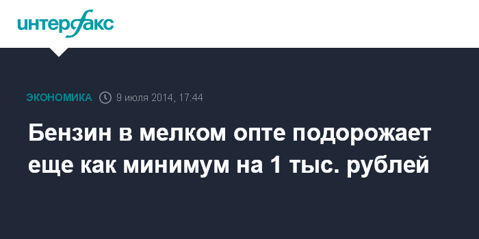 Бензин в мелком опте подорожает еще как минимум на 1 тыс. рублей