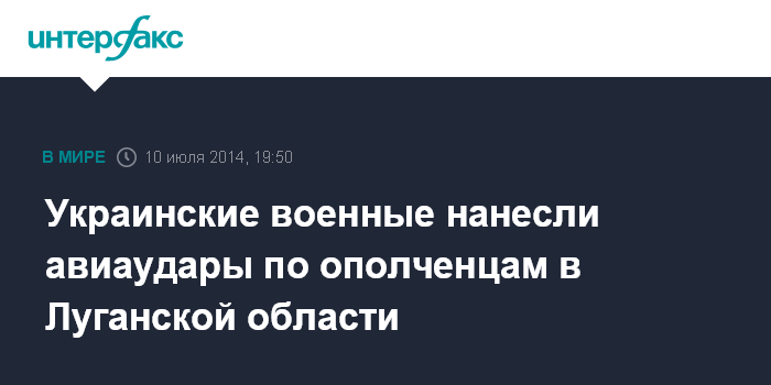 Москва. 10 июля. INTERFAX.RU - Украинские военно-воздушные силы нанесли авиаудар по позициям противника в районе населенного пункта Изварино в Луганской области близ российско-украинской границы, сообщил руководитель группы информирования по силовой операции Владислав Селезнев.