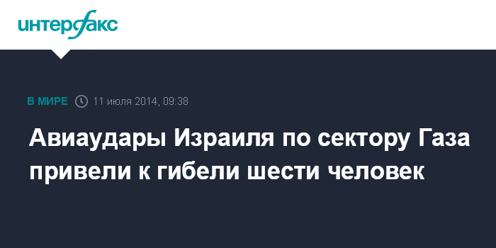 Москва. 11 июля. INTERFAX.RU - Жертвами ударов ВВС Израиля по сектору Газа в пятницу стали шесть палестинцев, сообщил журналистам представитель экстренных служб сектора Газа Ашраф аль-Кудра.