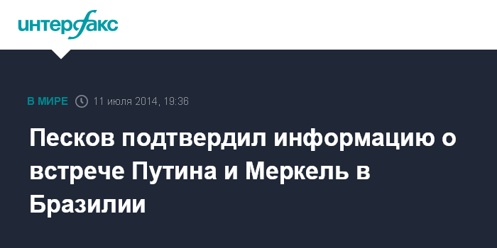 Песков подтвердил информацию о встрече Путина и Меркель в Бразилии