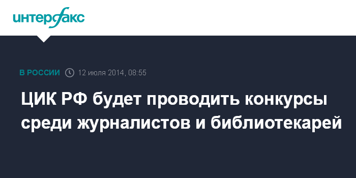 Москва. 12 июля. INTERFAX.RU - Центральная избирательная комиссия РФ, начиная с 2015 года, будет проводить ежегодные всероссийские конкурсы среди журналистов, работников библиотек, а также студентов, аспирантов и преподавателей, касающиеся проведения и освещения выборов.