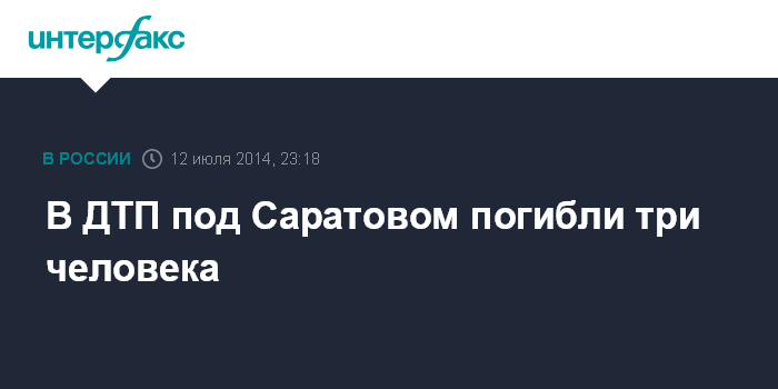 Москва. 12 июля. INTERFAX.RU - В дорожной аварии возле села Клещевка в Саратовской области в субботу погибли три человека. Об этом "Интерфаксу" сообщили в пресс-службе ГУ МВД региона.
