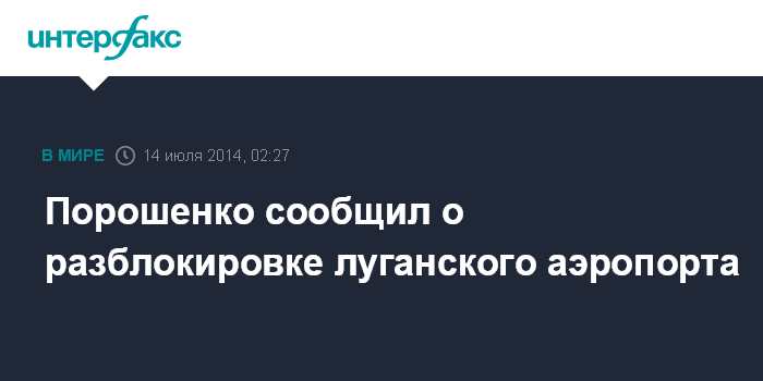 Москва. 14 июля. INTERFAX.RU - Украинские военные с боями дошли до Луганского аэропорта и освободили его, сообщается на официальной странице президента Украины Петра Порошенко в Facebook.